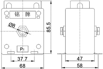 產(chǎn)品實(shí)物 電流比 額定二次負荷(VA) 外形及安裝尺寸圖
